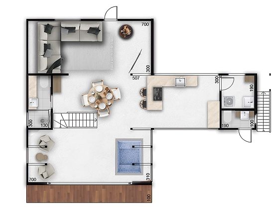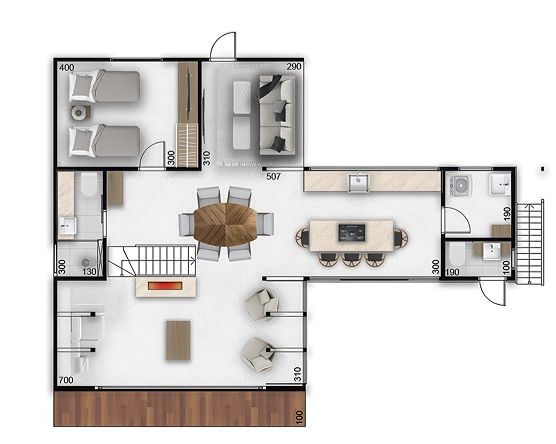 Kit Emerald brings together 152 square meters of generous living space, built around a mezzanine room and a dedicated suite. The layout is designed to feel open, elevated, and comfortable, giving the home a strong sense of scale while still keeping private zones clearly defined.